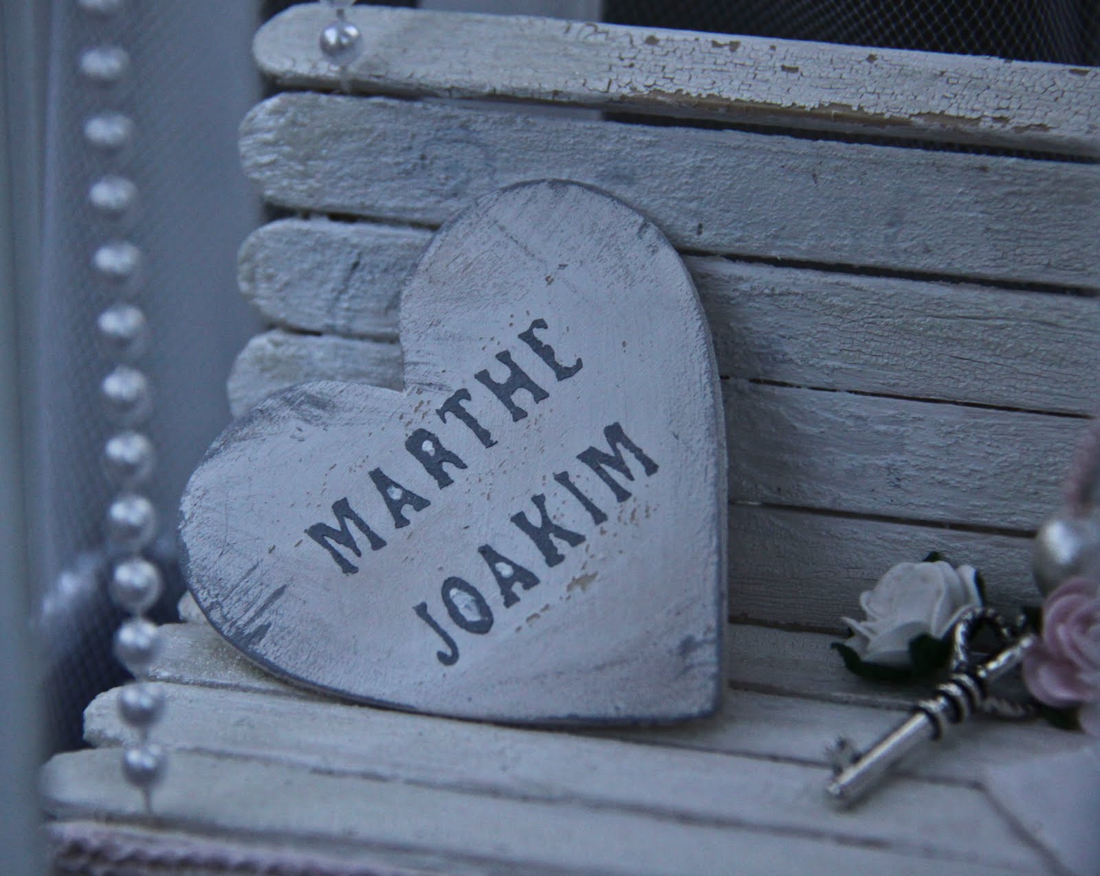 This is a little heartshaped piece of wood, that I just painted, and wrote our names on to.